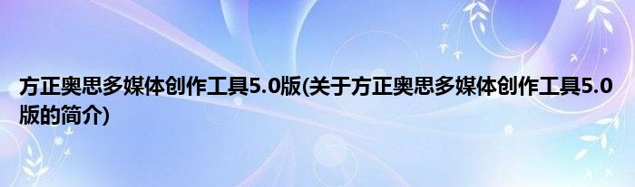 本文关于方正奥思多媒体创作工具5.0版的简介就讲解完毕,希望对大家有所帮助。