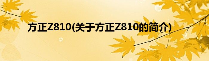 本文关于方正Z810的简介就讲解完毕,希望对大家有所帮助。