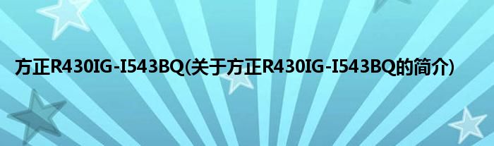 本文关于方正R430IG-I543BQ的简介就讲解完毕,希望对大家有所帮助。