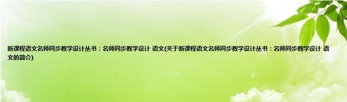 本文关于新课程语文名师同步教学设计丛书:名师同步教学设计 语文的简介就讲解完毕,希望对大家有所帮助。
