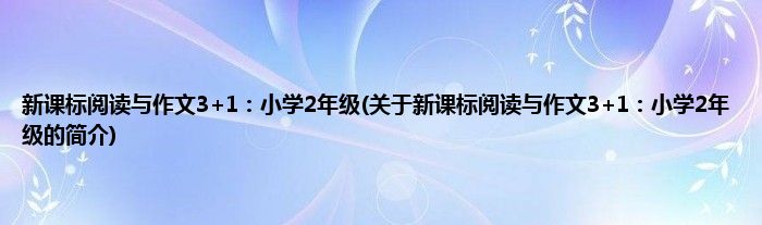 大家好,新课标阅读与作文3+1:小学2年级,关于新课标阅读与作文3+1:小学2年级的简介很多人还不知道,现在让我们一起来看看吧!