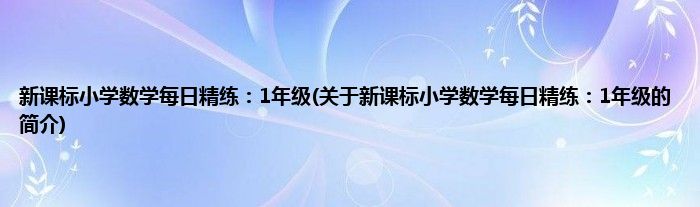 大家好,新课标小学数学每日精练:1年级,关于新课标小学数学每日精练:1年级的简介很多人还不知道,现在让我们一起来看看吧!