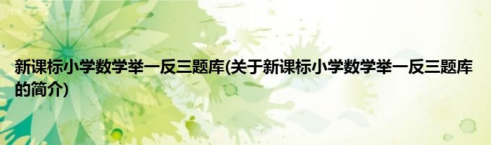 大家好,新课标小学数学举一反三题库,关于新课标小学数学举一反三题库的简介很多人还不知道,现在让我们一起来看看吧!