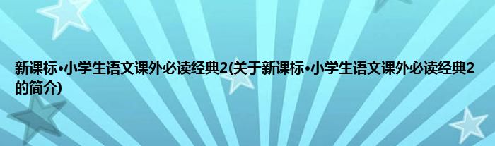本文关于新课标·小学生语文课外必读经典2的简介就讲解完毕,希望对大家有所帮助。