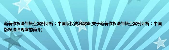 本文关于新著作权法与热点案例评析:中国版权法治观察的简介就讲解完毕,希望对大家有所帮助。