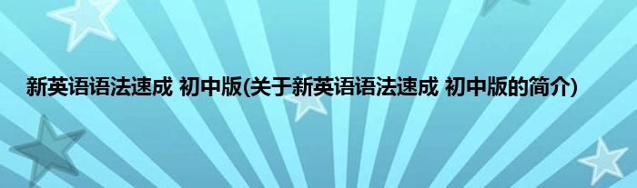 大家好,新英语语法速成 初中版,关于新英语语法速成 初中版的简介很多人还不知道,现在让我们一起来看看吧!
