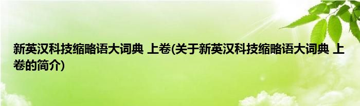 本文关于新英汉科技缩略语大词典 上卷的简介就讲解完毕,希望对大家有所帮助。
