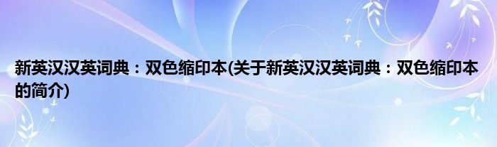 本文关于新英汉汉英词典:双色缩印本的简介就讲解完毕,希望对大家有所帮助。