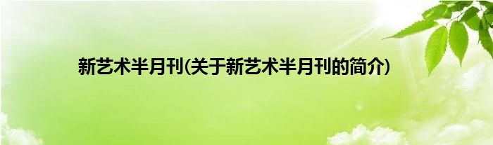 大家好,新艺术半月刊,关于新艺术半月刊的简介很多人还不知道,现在让我们一起来看看吧!