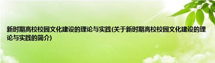 本文关于新时期高校校园文化建设的理论与实践的简介就讲解完毕,希望对大家有所帮助。