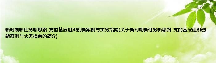 大家好,新时期新任务新思路-党的基层组织创新案例与实务指南,关于新时期新任务新思路-党的基层组织创新案例与实务指南的简介很多人还不知道,现在让我们一起来看看吧!