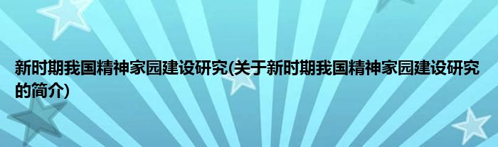 大家好,新时期我国精神家园建设研究,关于新时期我国精神家园建设研究的简介很多人还不知道,现在让我们一起来看看吧!