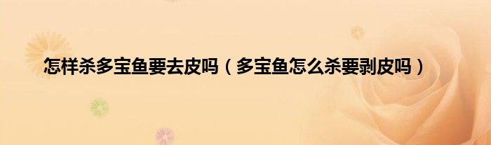 大家好,小科来为大家解答以上问题。怎样杀多宝鱼要去皮吗,多宝鱼怎么杀要剥皮吗很多人还不知道,现在让我们一起来看看吧!