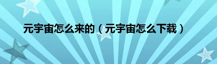 大家好,精选小编来为大家解答以上问题。元宇宙怎么来的,元宇宙怎么下载很多人还不知道,现在让我们一起来看看吧!