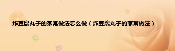 大家好,小常来为大家解答以上问题。炸豆腐丸子的家常做法怎么做,炸豆腐丸子的家常做法很多人还不知道,现在让我们一起来看看吧!