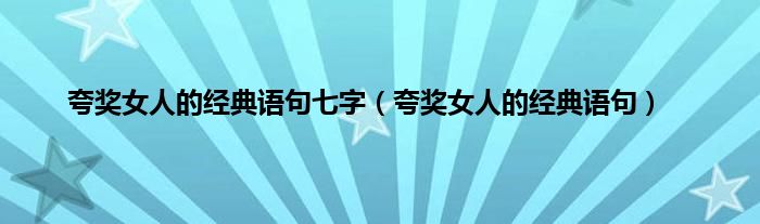 大家好,小常来为大家解答以上问题。夸奖女人的经典语句七字,夸奖女人的经典语句很多人还不知道,现在让我们一起来看看吧!