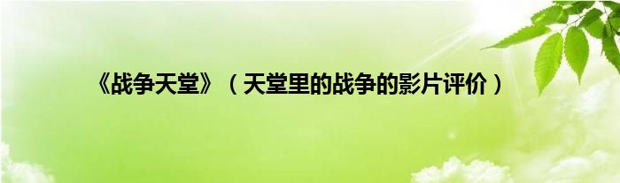 大家好,小常来为大家解答以上问题。《战争天堂》,天堂里的战争的影片评价很多人还不知道,现在让我们一起来看看吧!