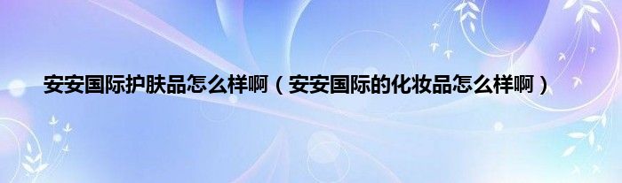 大家好,小常来为大家解答以上问题。安安国际护肤品怎么样啊,安安国际的化妆品怎么样啊很多人还不知道,现在让我们一起来看看吧!