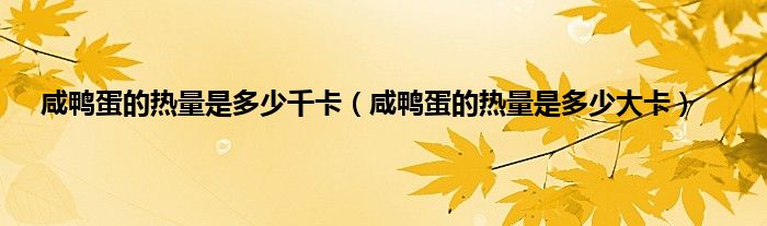 一、 咸鸭蛋的热量是多少大卡