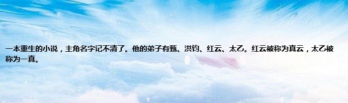 大家好,小常来为大家解答以上问题。一本重生的小说,主角名字记不清了。他的弟子有甄、洪钧、红云、太乙。红云被称为真云,太乙被称为一真。很多人还不知道,现在让我们一起来看看吧!