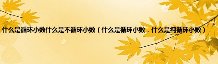 从小数部分第一位开始的循环小数,称为纯循环小数。纯循环小数是从十分位开始循环的小数,如0.33333333...(1/3),0.1428571428571....(1/7)等。顾名思义,纯循环小数就是在纯小数的基础上变成循环小数。