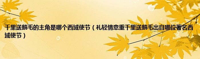 大家好,小常来为大家解答以上问题。千里送鹅毛的主角是哪个西域使节,礼轻情意重千里送鹅毛出自哪位著名西域使节很多人还不知道,现在让我们一起来看看吧!