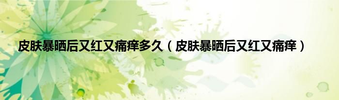 大家好,小科来为大家解答以上问题。皮肤暴晒后又红又痛痒多久,皮肤暴晒后又红又痛痒很多人还不知道,现在让我们一起来看看吧!