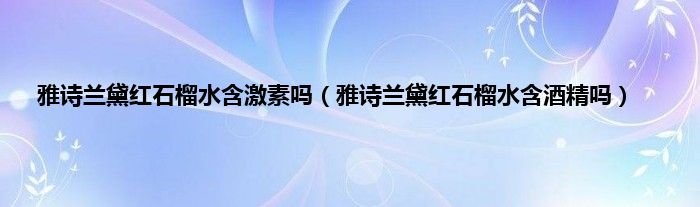 大家好,小科来为大家解答以上问题。雅诗兰黛红石榴水含激素吗,雅诗兰黛红石榴水含酒精吗很多人还不知道,现在让我们一起来看看吧!