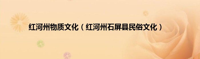 大家好,小常来为大家解答以上问题。红河州物质文化,红河州石屏县民俗文化很多人还不知道,现在让我们一起来看看吧!