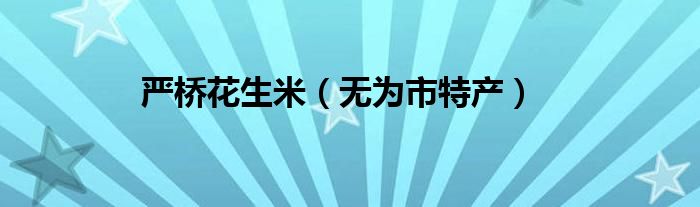 1、产于无为严桥镇,为传统工艺加工而成。原料精选花生仁,子粒饱满圆润,配以茴香、八角、橙皮、细盐、白糖等多种调料浸泡后晾干,再下锅用温火焙烤,类似炒花生米。凡花生产地皆有此法。但严桥花生米佐料配方科学,炒作讲究火候。成品酥脆香甜,味美可口,回味悠长,一般花生米与其不可同日而语。( 无为县)