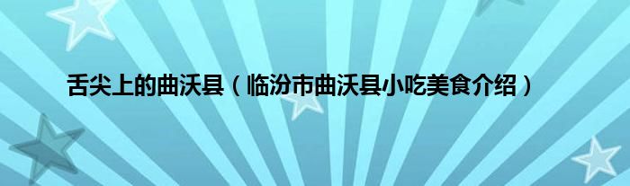舌尖上的曲沃县(临汾市曲沃县小吃美食介绍)