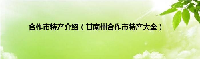 大家好,小常来为大家解答以上问题。合作市特产介绍,甘南州合作市特产大全很多人还不知道,现在让我们一起来看看吧!
