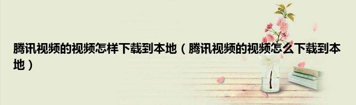 大家好,小常来为大家解答以上问题。腾讯视频的视频怎样下载到本地,腾讯视频的视频怎么下载到本地很多人还不知道,现在让我们一起来看看吧!