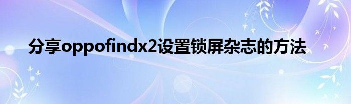 现在大家使用手机的频率越来越频繁,手机也为我们提供了许多的便利,今天小编也来说一下这个分享oppofindx2设置锁屏杂志的方法相关的文章,这个操作其实不复杂,接下来就给大家介绍一下分享oppofindx2设置锁屏杂志的方法,一起来看看吧: