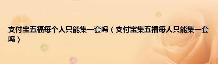 大家好,小常来为大家解答以上问题。支付宝五福每个人只能集一套吗,支付宝集五福每人只能集一套吗很多人还不知道,现在让我们一起来看看吧!