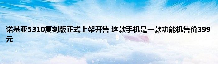 今天来聊聊一篇关于诺基亚5310复刻版正式上架开售 这款手机是一款功能机售价399元的文章,现在就为大家来简单介绍下诺基亚5310复刻版正式上架开售 这款手机是一款功能机售价399元,希望对各位小伙伴们有所帮助。