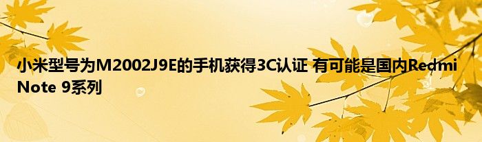 相信通过小米型号为M2002J9E的手机获得3C认证 有可能是国内Redmi Note 9系列这篇文章能帮到你,在和好朋友分享的时候,也欢迎感兴趣小伙伴们一起来探讨。