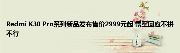 现在大家使用手机的频率越来越频繁,手机也为我们提供了许多的便利,今天小编也来说一下这个Redmi K30 Pro系列新品发布售价2999元起 雷军回应不拼不行相关的文章,这个操作其实不复杂,接下来就给大家介绍一下Redmi K30 Pro系列新品发布售价2999元起 雷军回应不拼不行,一起来看看吧: