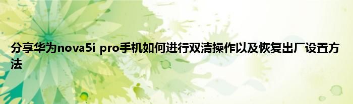 相信通过分享华为nova5i pro手机如何进行双清操作以及恢复出厂设置方法这篇文章能帮到你,也欢迎感兴趣小伙伴们一起来探讨。
