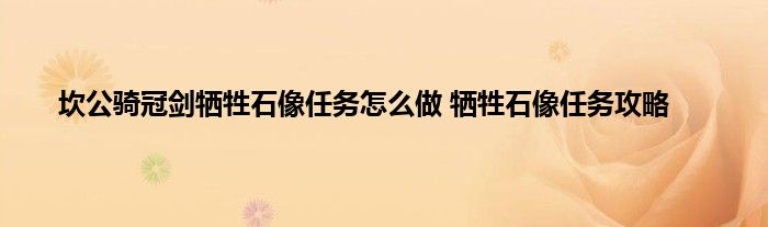 坎公骑冠剑牺牲石像是游戏中第三世界的任务之一,玩家们完成任务后会有奖励可以领取,但是很多玩家都在不知道这个牺牲石像任务怎么做,因此很多玩家想知道坎公骑冠剑牺牲石像任务怎么做?蚕豆小编为您带来坎公骑冠剑牺牲石像任务攻略。