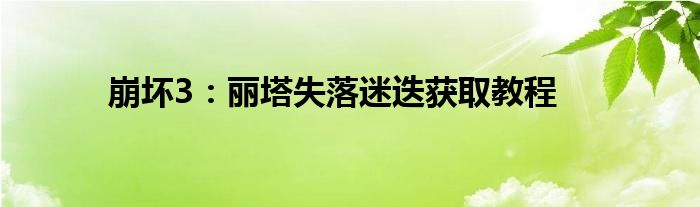 崩坏3丽塔失落迷迭怎么获得