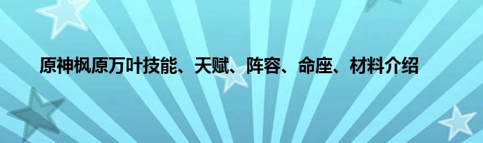 原神的新角色枫原万叶想必很多小伙伴都是很喜欢的吧,属性和技能都十分的优秀,作为一个可辅可输出的风系角色却拥有现在所有风系角色的特点,是非常全能的一个角色了,还有很多玩家对枫原万叶不是很了解,下面就岁蚕豆君一起来了解下这个角色吧。