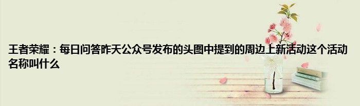 今天来聊聊一篇关于王者荣耀:每日问答昨天公众号发布的头图中提到的周边上新活动这个活动名称叫什么的文章,现在就为大家来简单介绍下王者荣耀:每日问答昨天公众号发布的头图中提到的周边上新活动这个活动名称叫什么,希望对各位小伙伴们有所帮助。