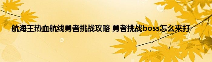 航海王热血航线勇者挑战是一个难度比较高的玩法,在这个模式当中还有一些boss给玩家来进行挑战,玩家挑战胜利之后才干通关,很多玩家都不知道里面的boss打法是怎么样的,那下面就让小编给玩家们分享一下勇者挑战boss打法攻略,玩家其实搭配好自己的阵容就成功了一大半。