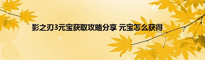 影之刃3元宝怎么猎取