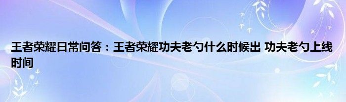 今天来聊聊关于王者荣耀日常问答:王者荣耀功夫老勺什么时候出,功夫老勺上线时间的文章,游戏是很多人的选择,但是游戏玩多了也会身心疲惫,现在就为大家来简单介绍下王者荣耀日常问答:王者荣耀功夫老勺什么时候出,功夫老勺上线时间,希望对各位小伙伴们有所帮助。