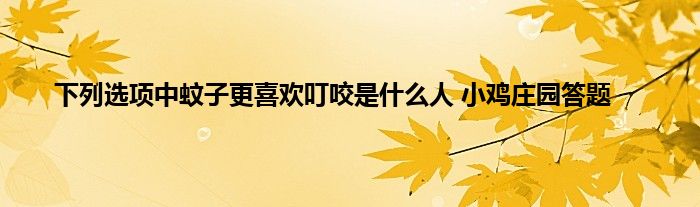 下列选项中蚊子更喜欢叮咬是什么人 小鸡庄园答题,欢迎大家来到这里,能进来的小伙伴都有玩蚂蚁庄园的,支付宝蚂蚁庄园每天都会在小课堂更新一道题目,答对即可领取小鸡饲料180G,4月21日蚂蚁庄园问题是:下列选项中蚊子更喜欢叮咬哪类人?很多小伙伴都不知道下列选项中蚊子更喜欢叮咬哪类人这个问题的答案是什么,那么小编就为大家分享下4月21日蚂蚁庄园课题问题的答案,希望对大家有所帮助!
