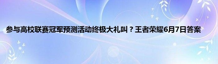 一、在昨日推文中,参与高校联赛冠军预测活动,除永久英雄、精美周边、皮肤体验卡外,还有机会获得的终极大礼叫?