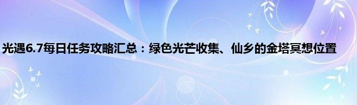 光遇每天都需要玩家来完成日常任务,完成日常之后可以获得对应的奖励,今天是6月7日,今天的日常任务已经出来了,分别是,向其他玩家传递能量,收集绿色光芒,净化10株黑暗植物,在仙乡的金塔下冥想,很多玩家不知道冥想位置和光芒收集在哪里,下面就来一起看看吧。