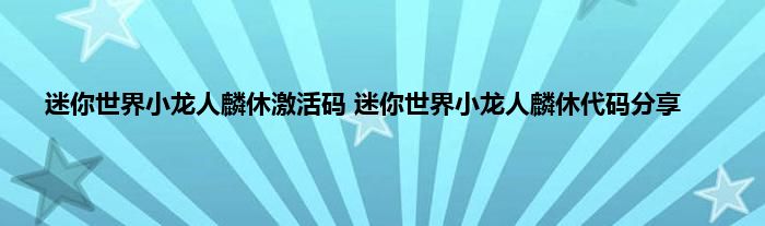 最近玩迷你世界的玩家都在问,游戏里面的小龙人麟休激活码是什么?迷你世界将于6月9日迎来全新的1.0.5版本,新版本中会上架全新打扮【小龙人麟休】,小编我特意整理了相关的资讯,那么我们该如何白嫖这个打扮呢?下面就是迷你世界小龙人麟休兑换码了,大家快来领取吧!